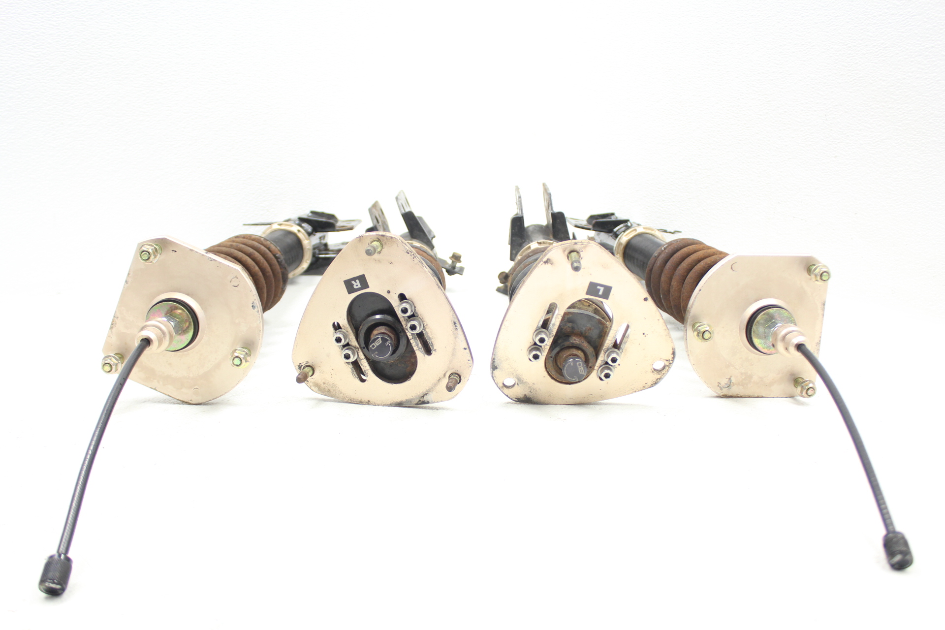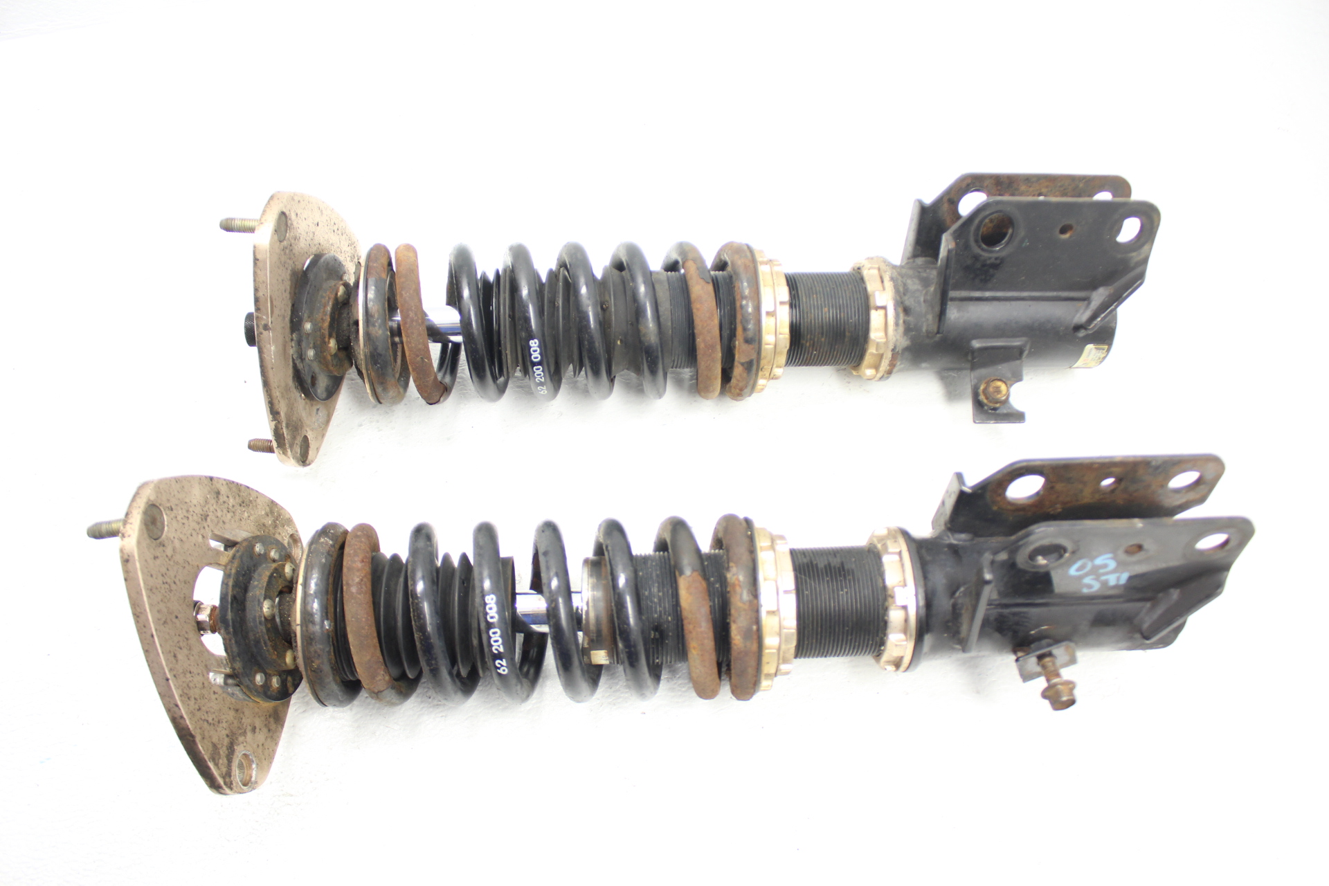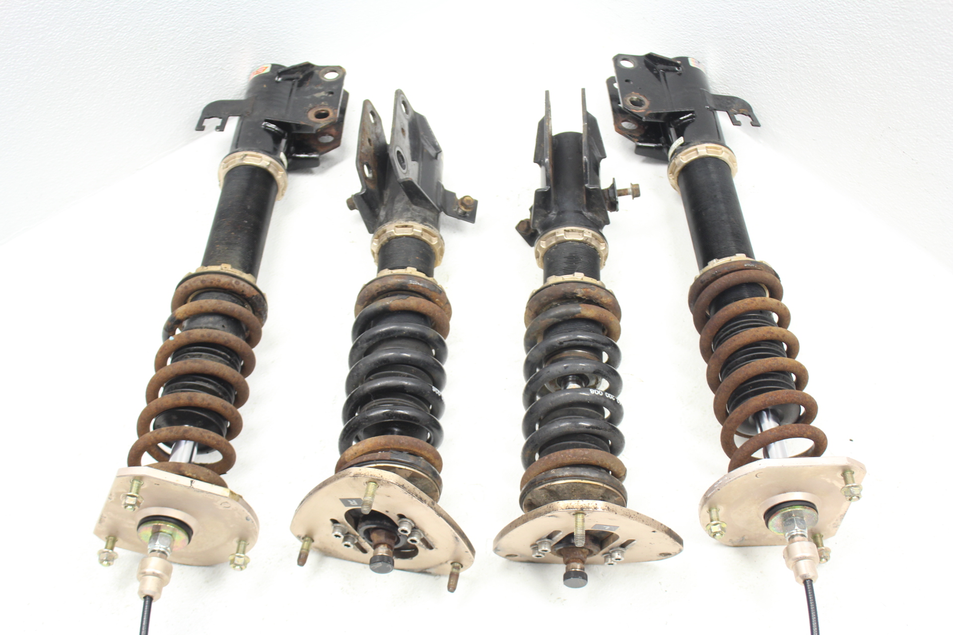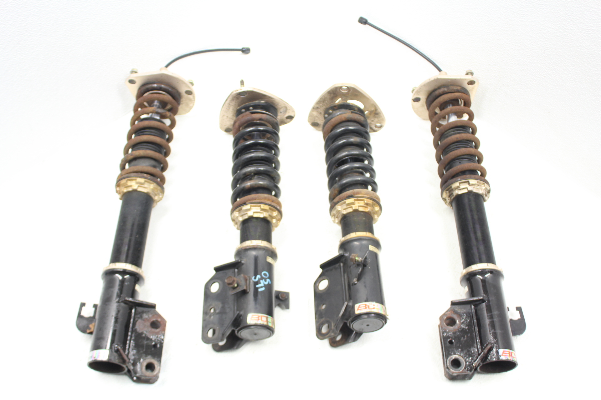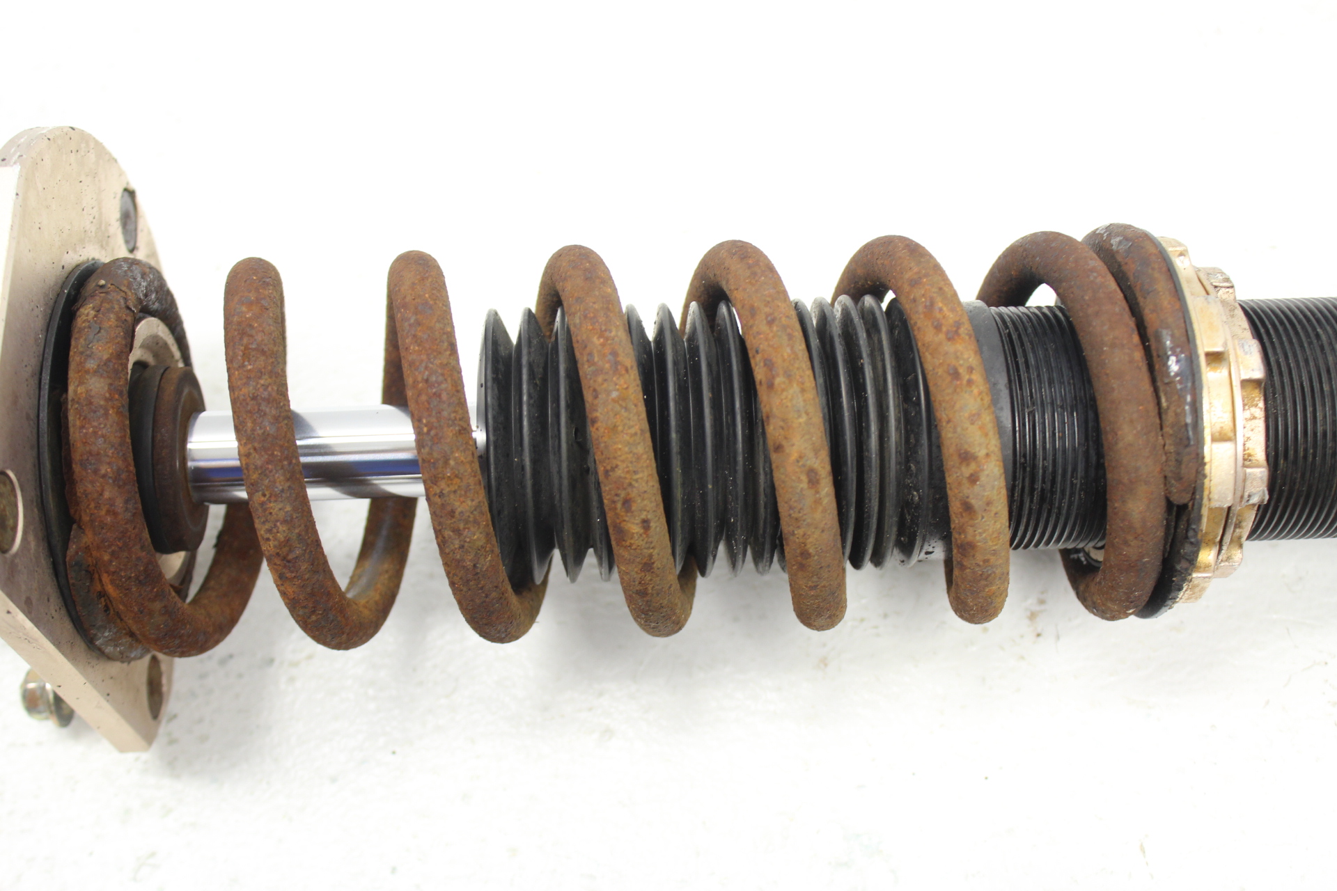 The item may have some signs of cosmetic wear but is fully operational and functions as intended. Please note, these coilovers are in good working order with no leaks. The adjustment collars are seized and need to be soaked in PB blaster / wd-40 to free them up in order to be able to adjust them. There is no damage to them other than surface rust. This are going to be heavily discounted for Cyber Monday.